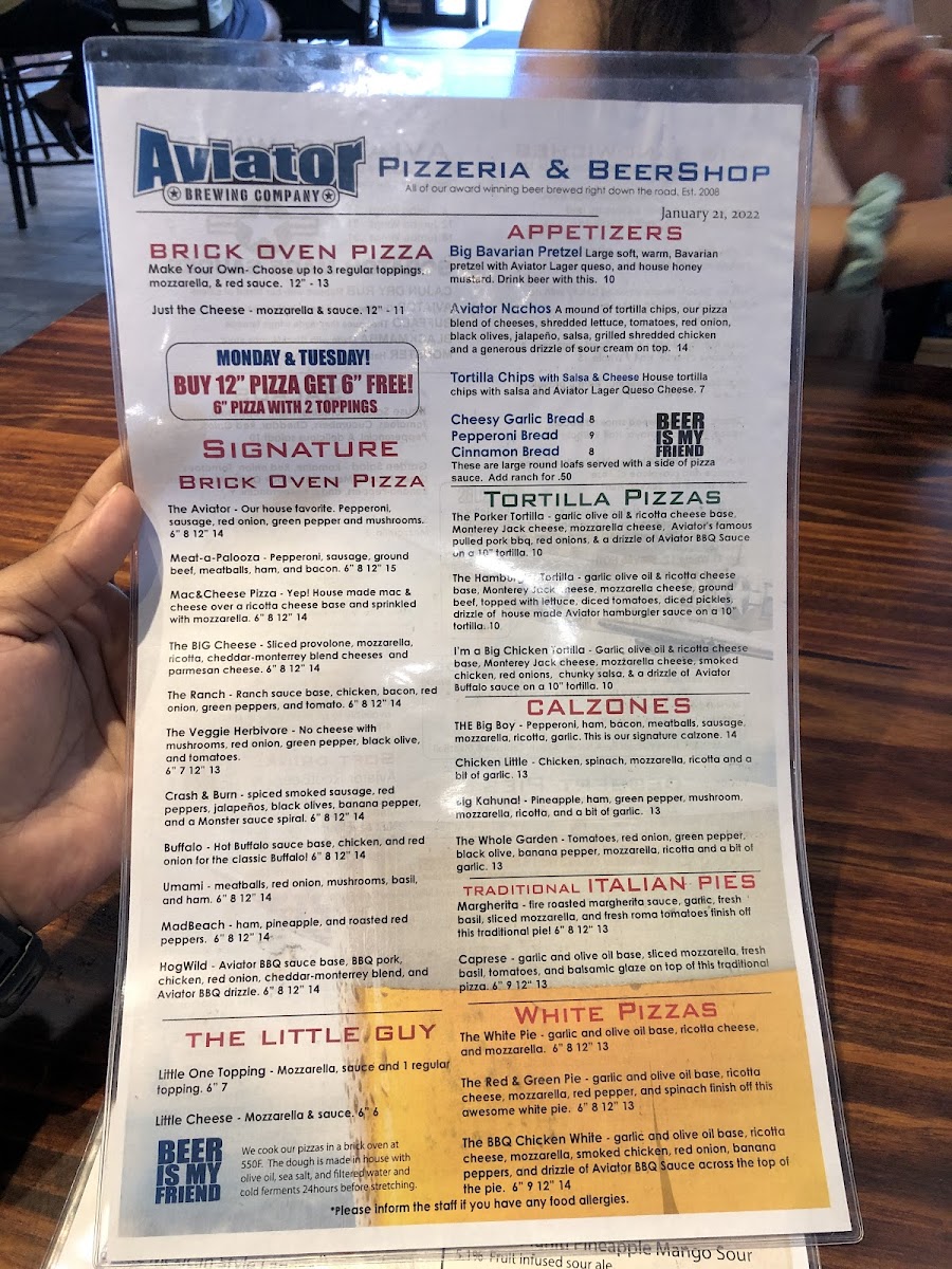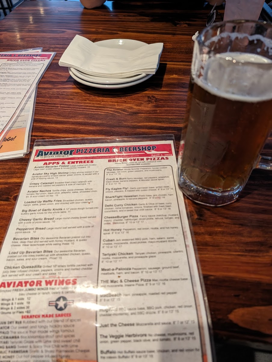 Large Bavarian beer pretzel with Aviator Lager beer queso cheese & honey mustard.